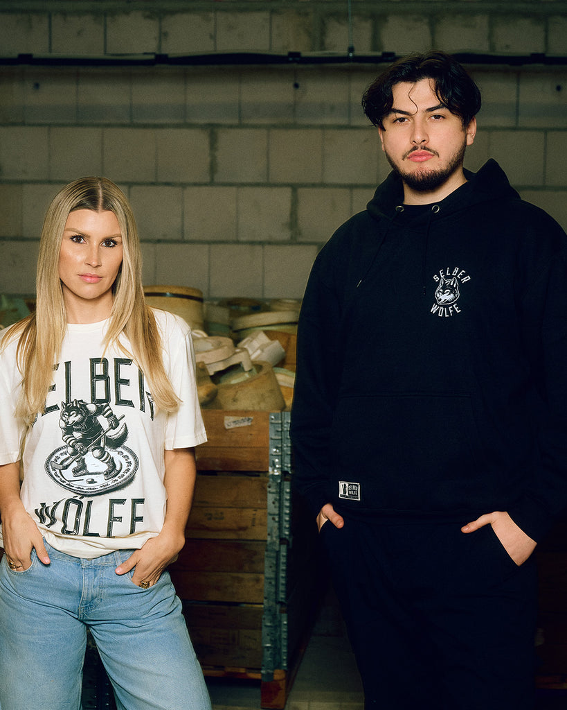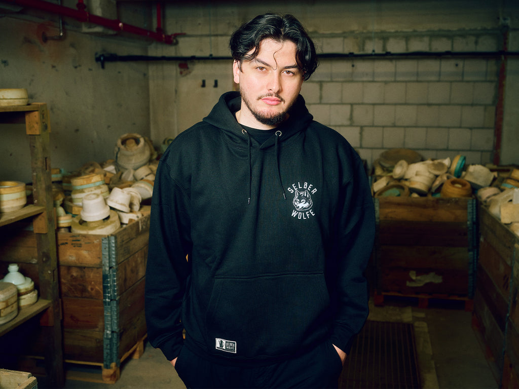 Hoodie Selber Wölfe Logo klein dunkelblau